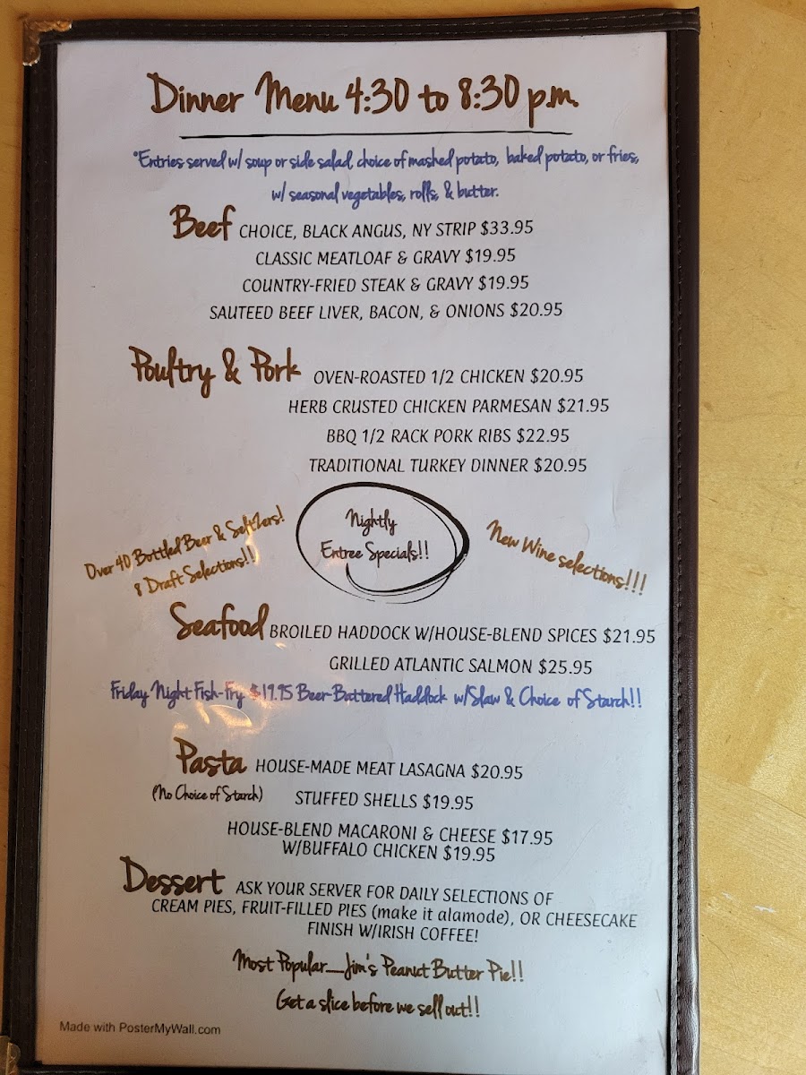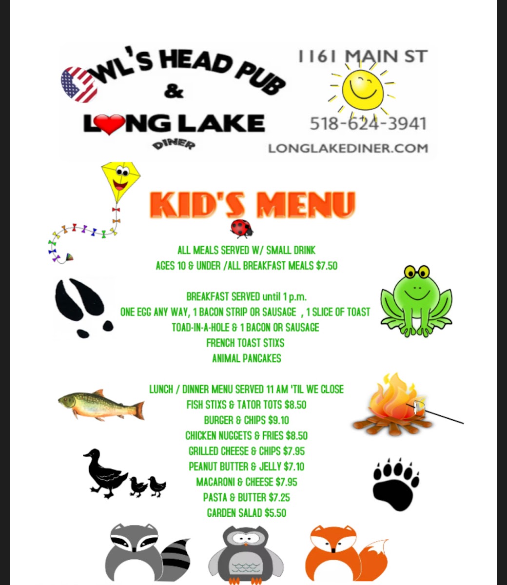 Long Lake Diner & Owl’s Head Pub Menu (2025 Update)